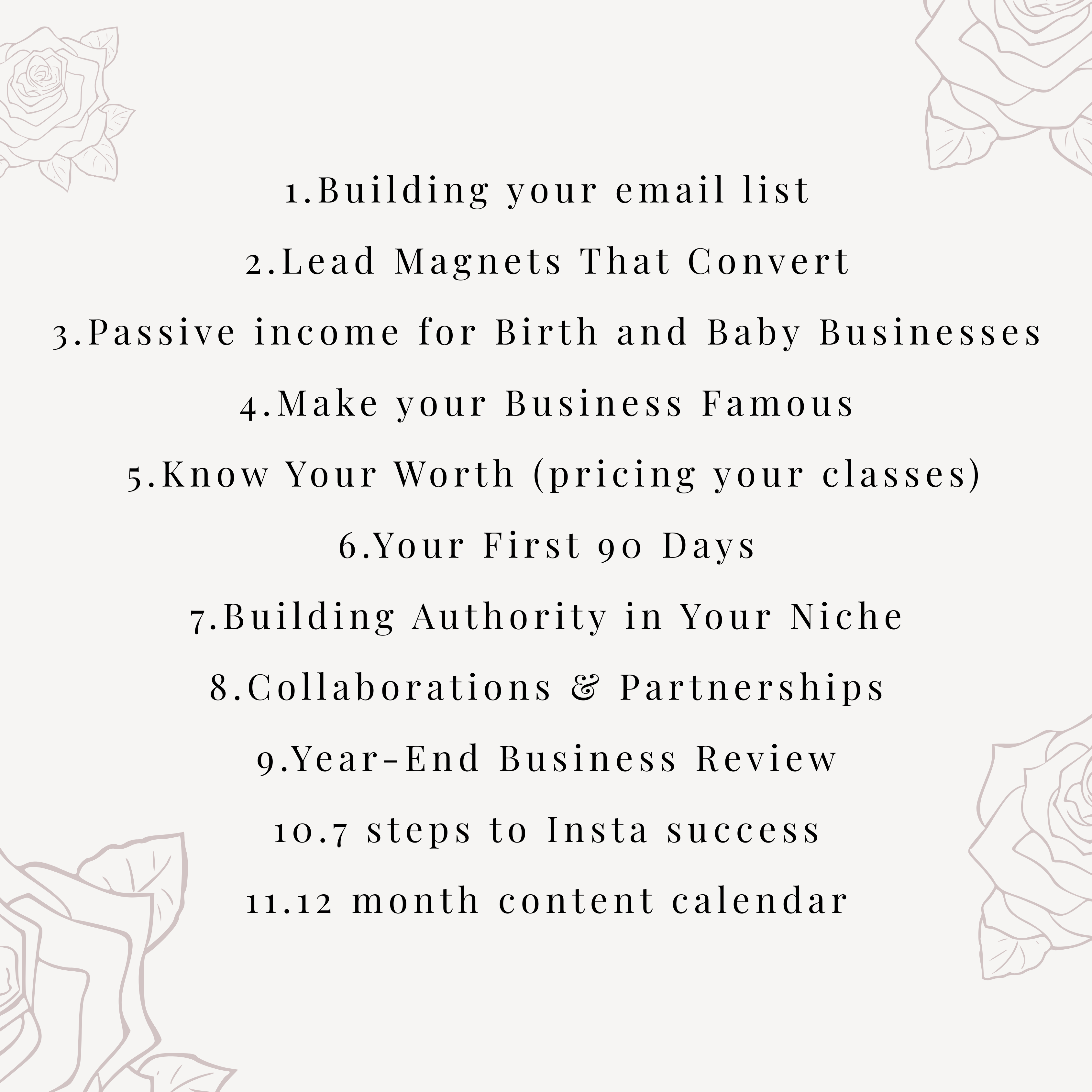 Each course is designed to be simple, practical, and flexible, so you can work through them at your own pace. From marketing strategies to business tools, these mini courses are your go-to resource for building a thriving birth and baby business.